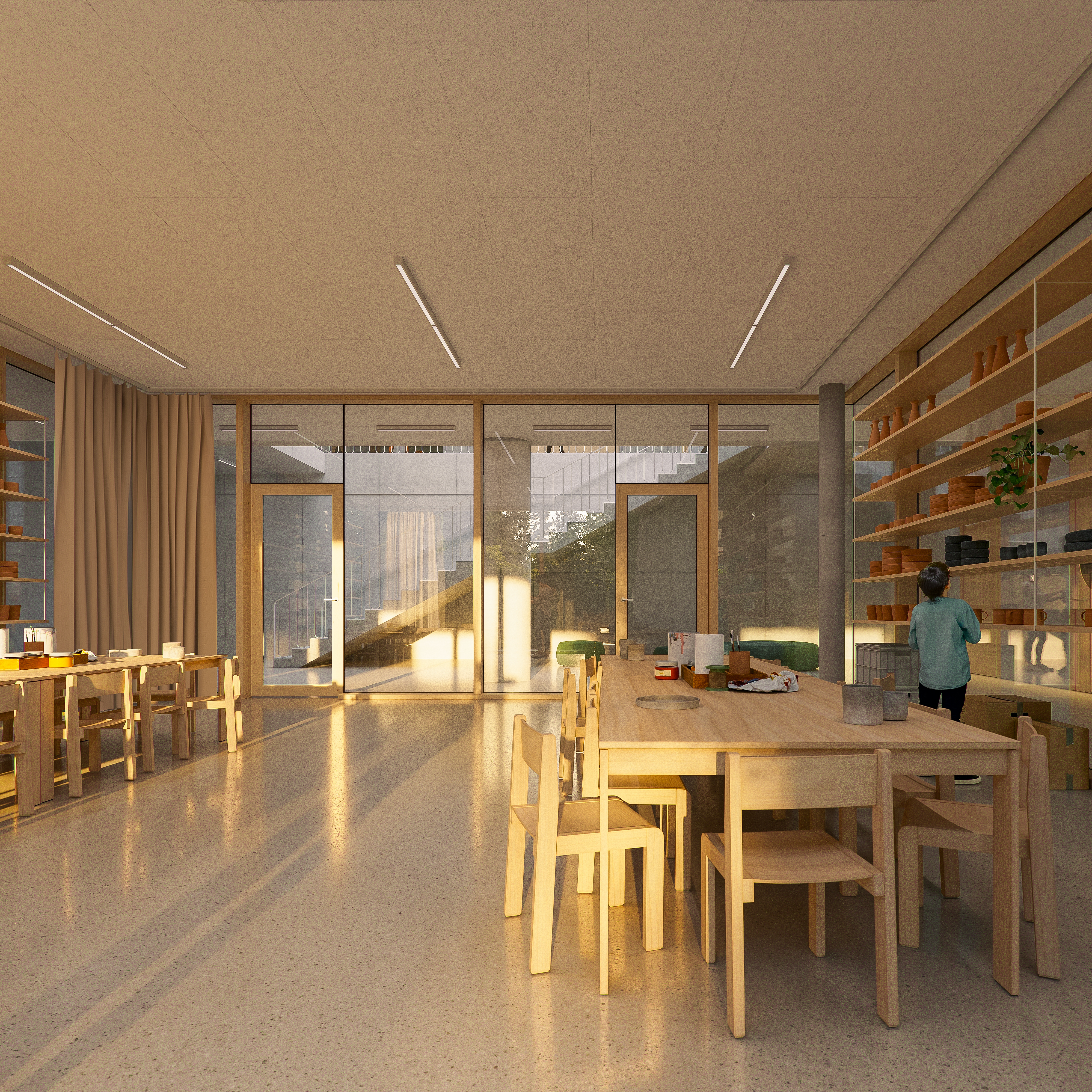Součásti objektu: kuchyně, víceúčelový sál, řemeslný ateliér, zahrada s herními prvky