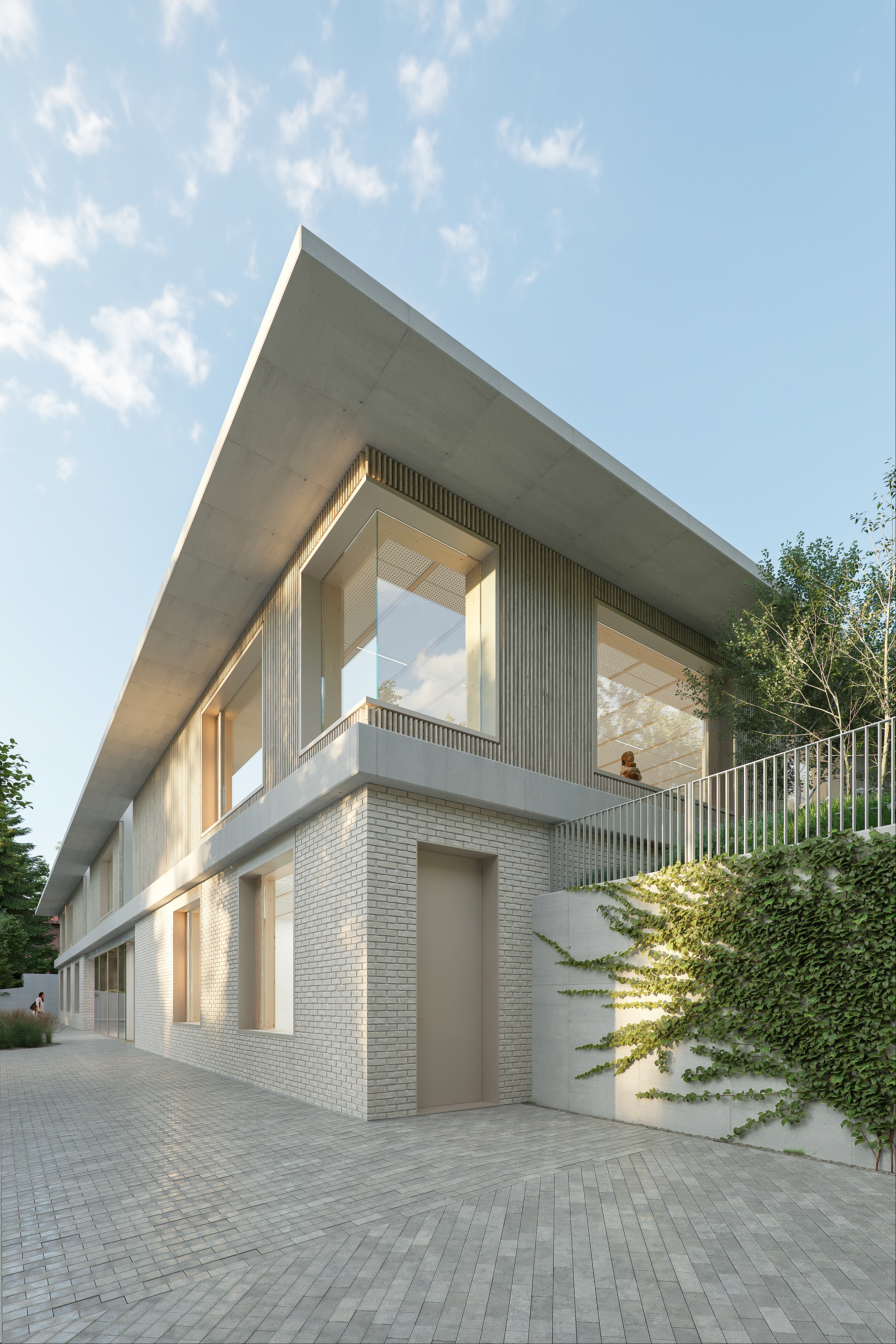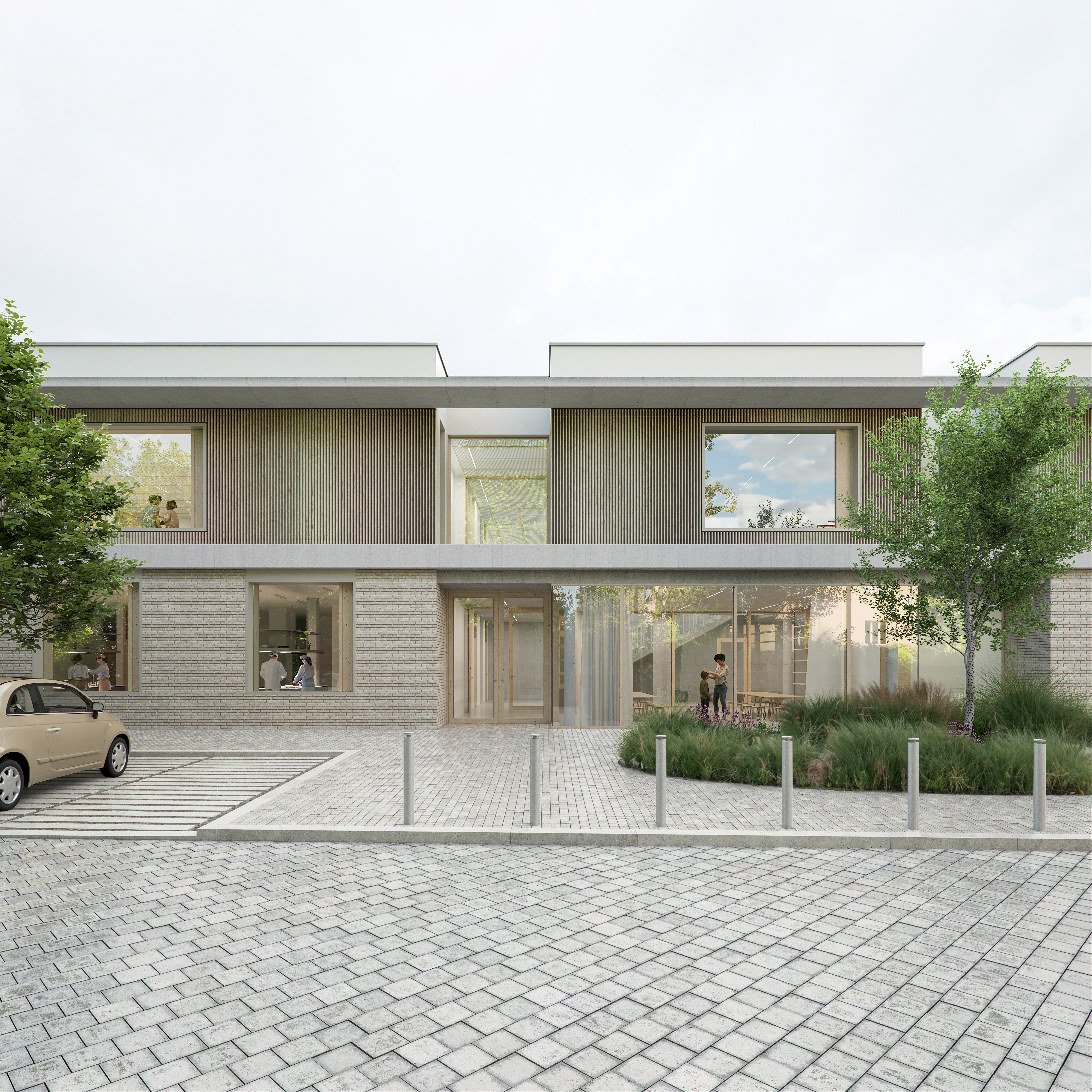 získala dvojice architektů Martin Vančura a Anna Koukolová, na řešení zahrady spolupracoval Ateliér Za Mák: Porota na vítězném návrhu nejvíce ocenila kompaktnost, racionálnost vnitřního řešení a civilnost. Dvoupodlažní dům vytváří přívětivý městský parter do ulice Rybářská. Svým umístěním uvolňuje prostor zahrady, která je v konkurenci ostatních návrhů dobře řešená, krajině komponovaná, členěná na jednotlivé funkční zóny a dostatečně kapacitní. Všechny třídy jsou umístěné na jedné úrovni soustředěné kolem vnitřního atria, což podporuje vnitřní přehlednost školy, sounáležitost a orientaci. Umístění kuchyně a admi-nistrativního bloku u vstupu spolu s tělocvičnou a místností pro kroužek oživuje předprostor školy.