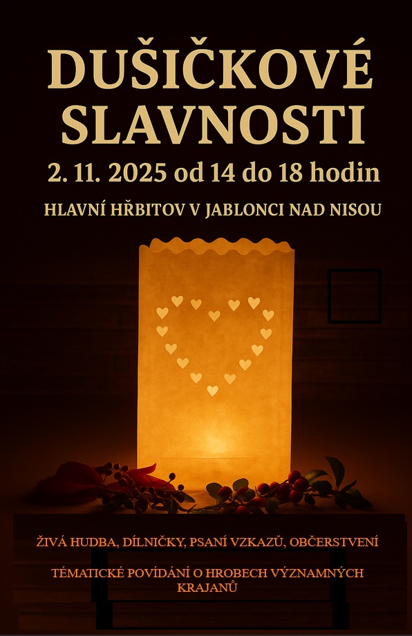 Jablonec nad Nisou - Magistrát města Jablonec nad Nisou zve veřejnost v neděli 2. listopadu od 14 hodin na hlavní hřbitov k uctění památky zesnulých.