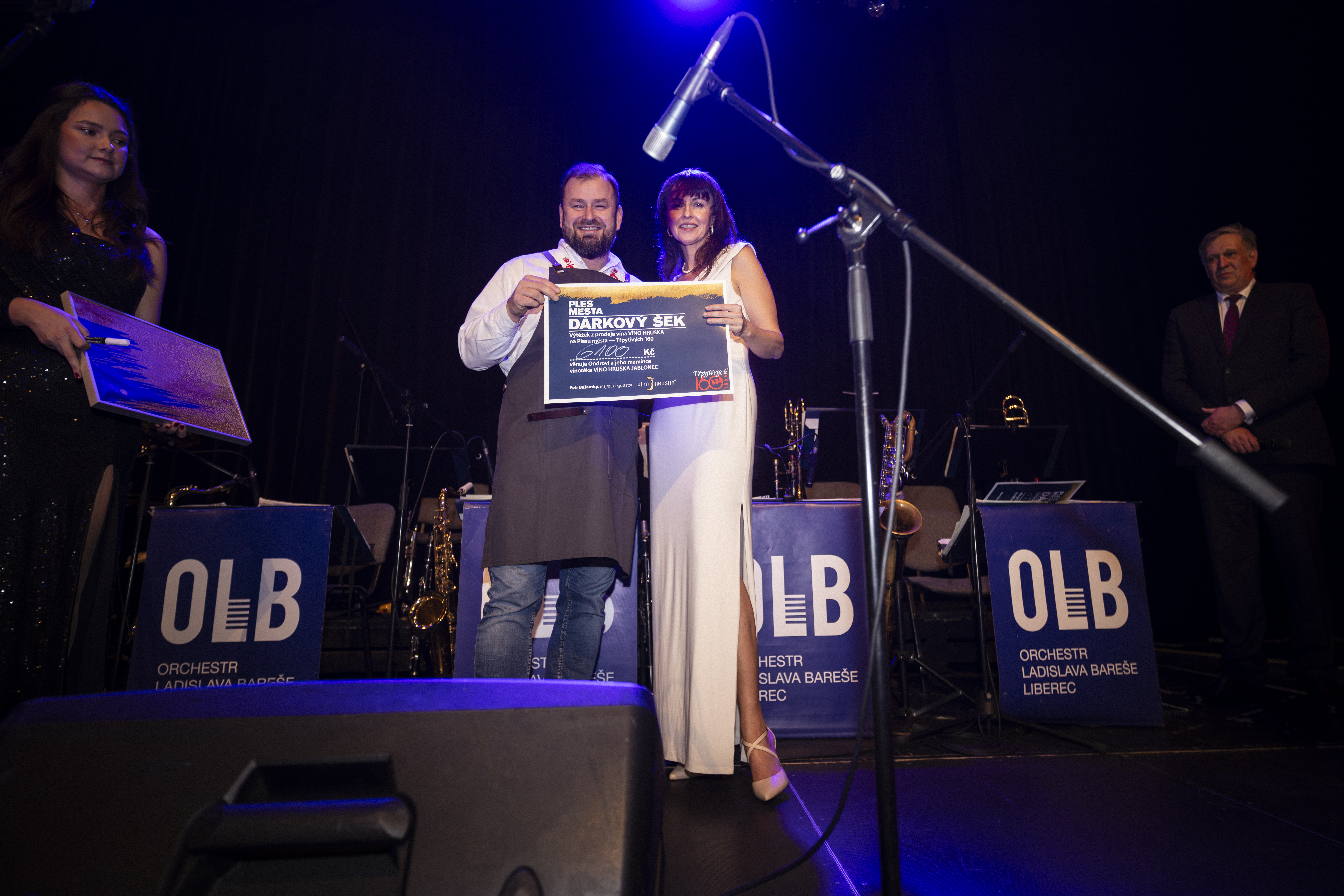 Součástí plesu byl také charitativní rozměr. „Spojili jsme se s Nadací Preciosa a rozhodli jsme se část z výtěžku plesu věnovat na jimi vyhlášenou sbírku. Město předalo 66 tis. korun a připojily se k nám i Víno Hruška a Sundisk, které zajišťovaly občerstvení,“ připomíná primátor Vele s tím, že k Ondrovi a jeho mamince poputuje prostřednictvím nadace celkem 87 100 korun. Šeky od Petra Bušanského z Víno Hruška a Martina Bauera ml. ze Sundisku převzala ředitelka Nadace Preciosa Andrea Kroupová.